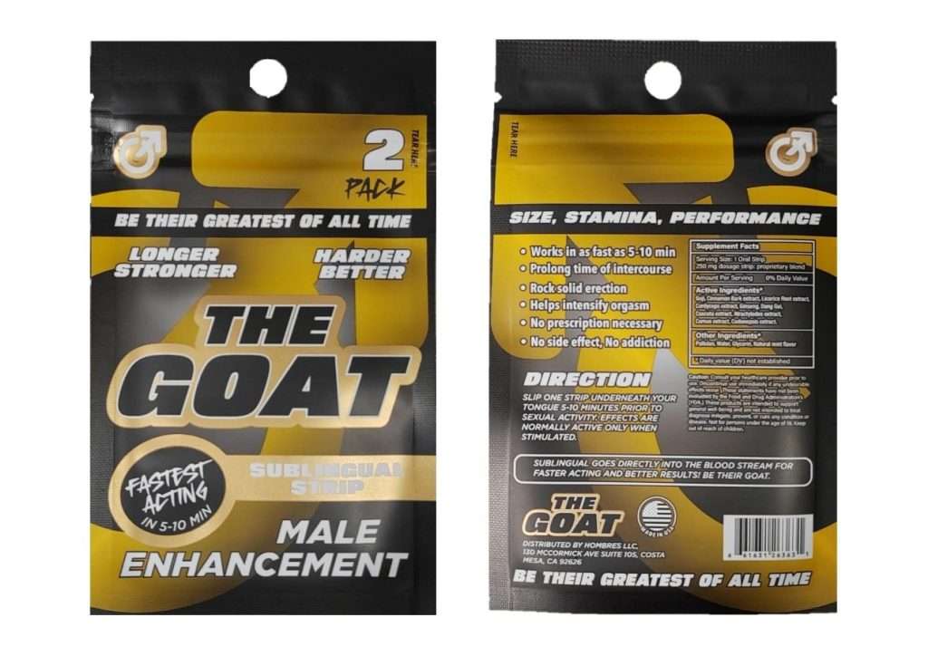 根據香港衞生署的公告,一款名為「The Goat Sublingual Strip」的產品被發現摻雜有西藥成分「昔多芬」(sildenafil)。