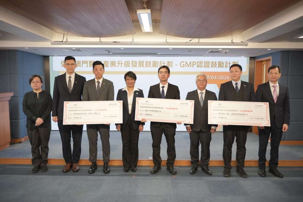 首批受惠的三家本澳GMP認證企業分別為(按申請排序):張權破痛油中藥廠(澳門)有限公司、南粵天然藥物有限公司及廣藥集團(澳門)國際發展產業有限公司。上述企業均於2025年1月至2026年2月期間,成功通過藥物監督管理局藥物生產質量管理規範(GMP)的關鍵環節認證,包括廠房設施、人員素質、文件記錄、生產與質量控制等,確保藥物生產過程符合嚴格品質標準,為本澳藥品在區內外市場的信譽奠定堅實基礎。